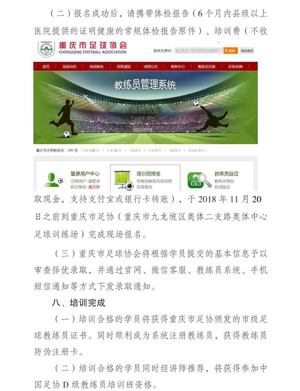 [重庆足协] 2018年 市级 第8期培训班报名通知